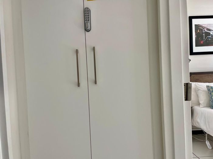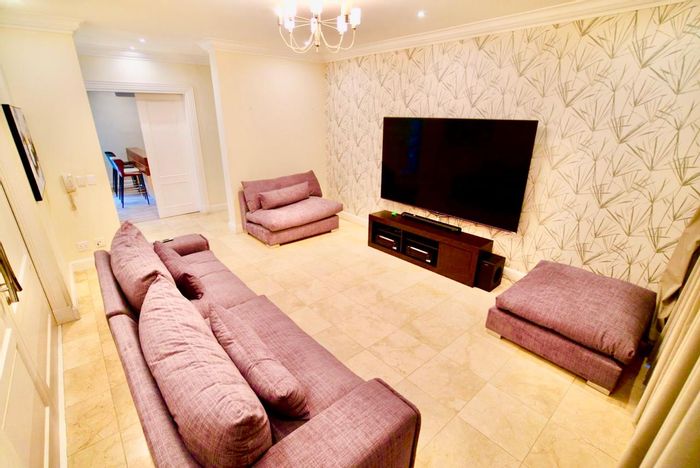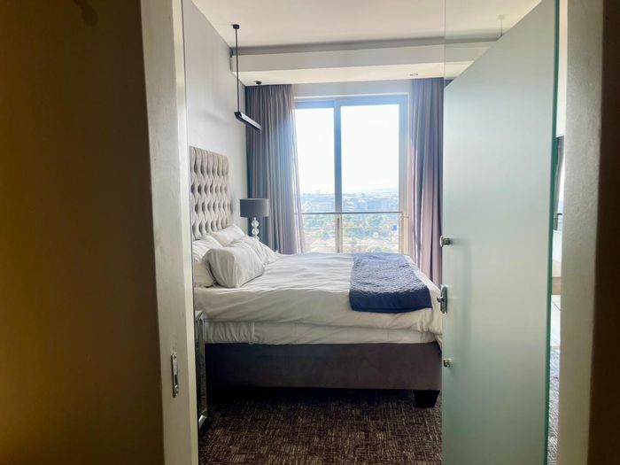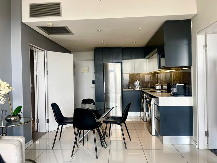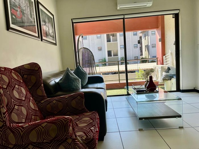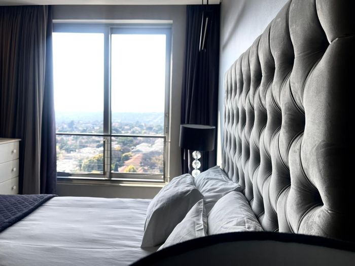 Move-in ready, fully furnished Sandton apartment with city views, private balcony and 24-hour security. Walk to Sandton City and Hyde Park — 2 beds, 2 baths, double garage.