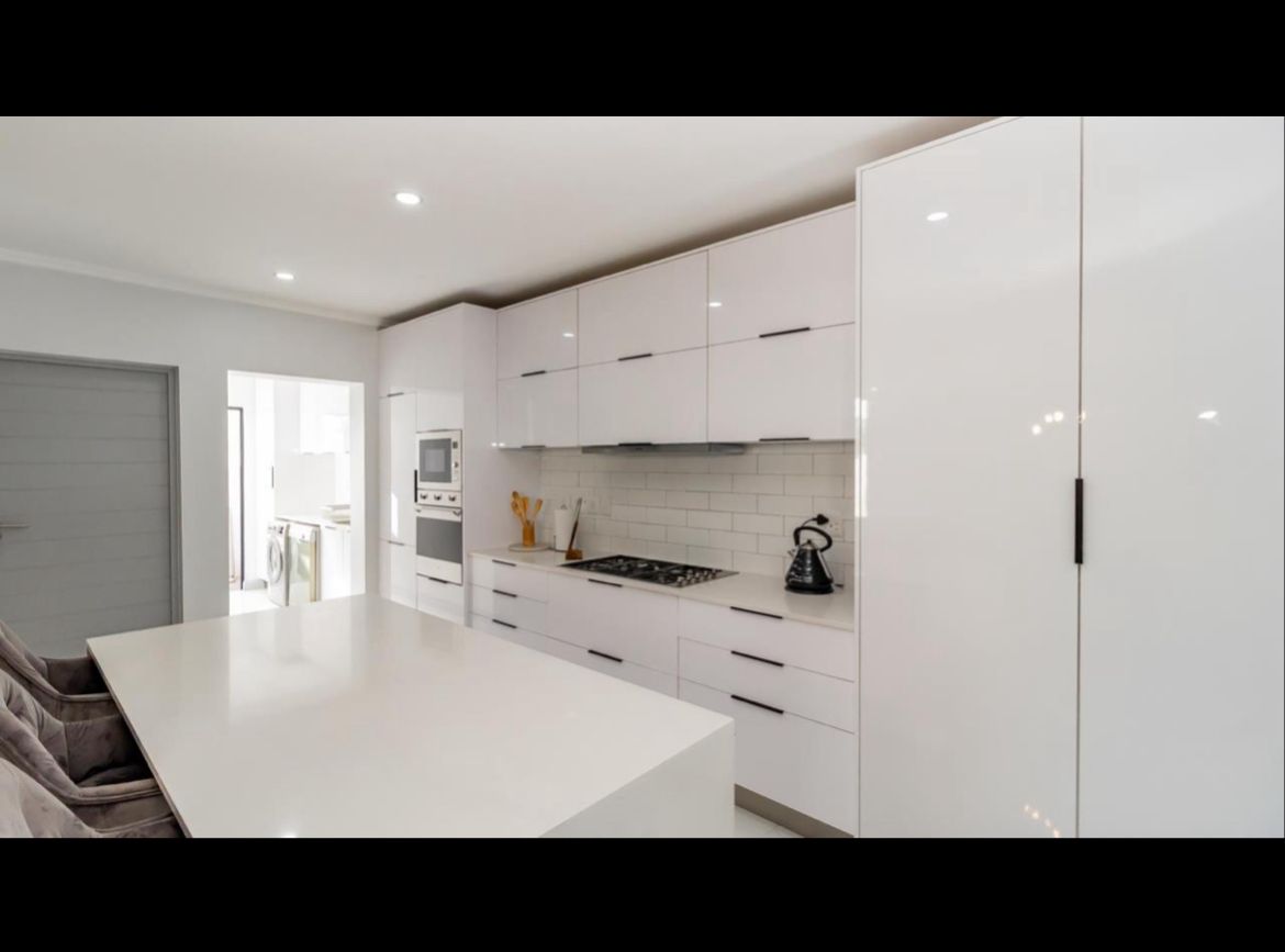 - Open-plan living area with sliders opening to the patio from the lounge and dining room