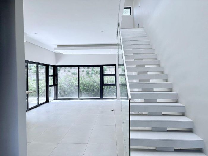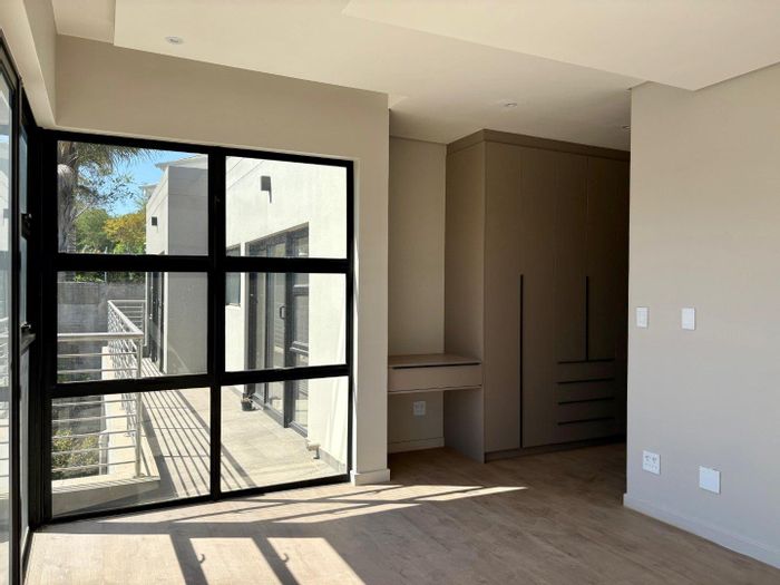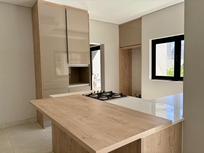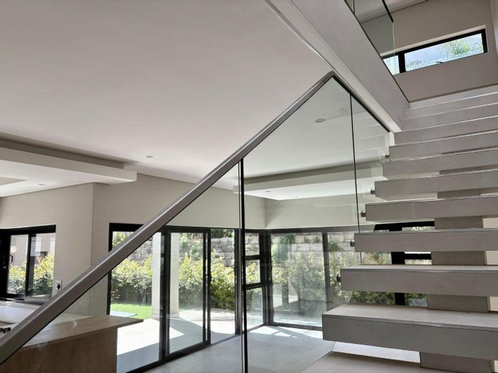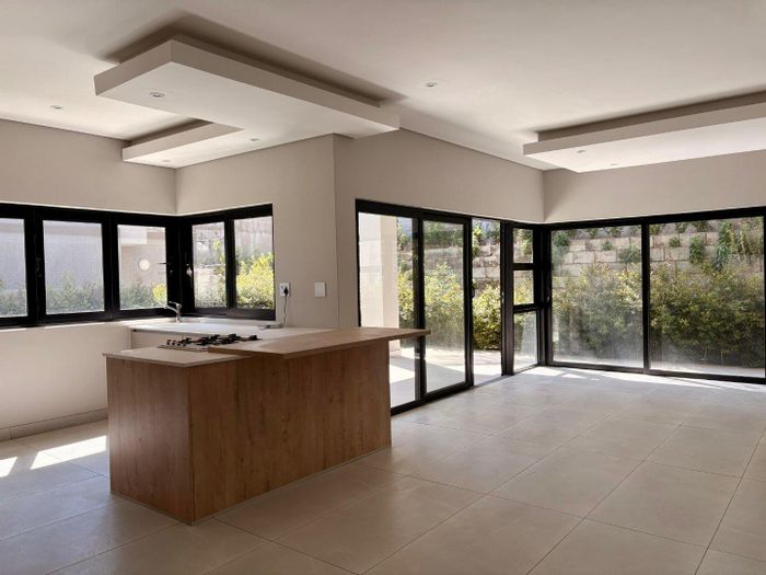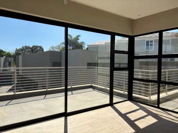 Entertainer's oasis in upmarket Bryanston, near shopping and top schools — open-plan kitchen with island and scullery, pool, private balconies on all three en-suites, office nook, secure garage.