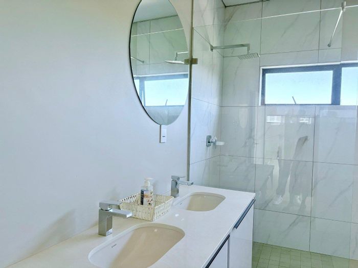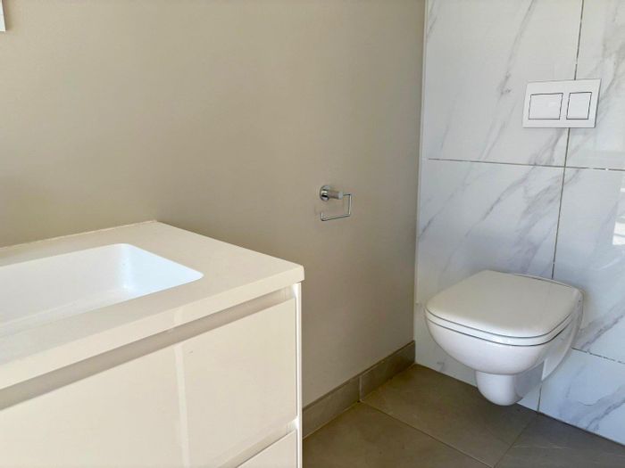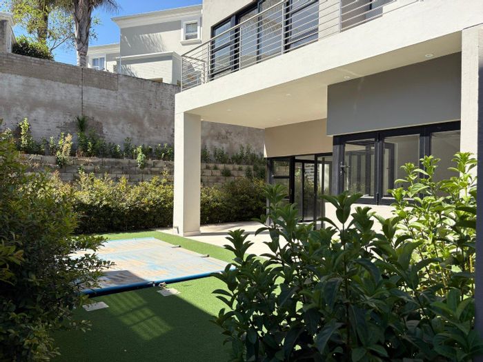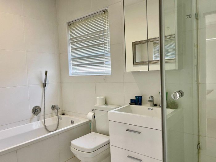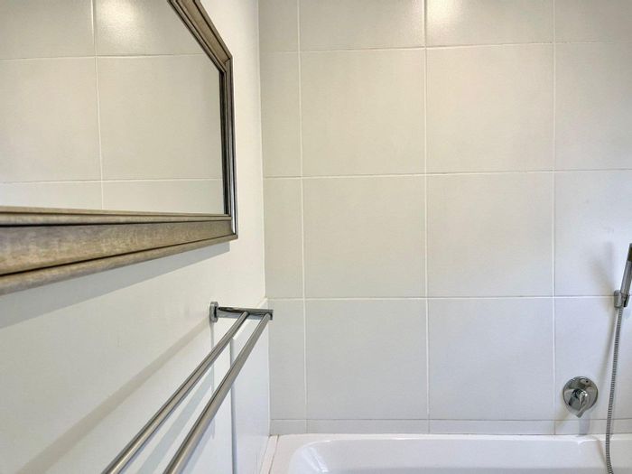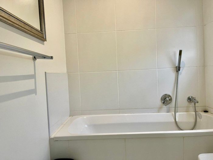 Renovated ground-floor apartment with private garden in Waterfall Heights, minutes from top schools, the N1 and Mall of Africa; open-plan living, two bedrooms, bathroom with tub and shower.