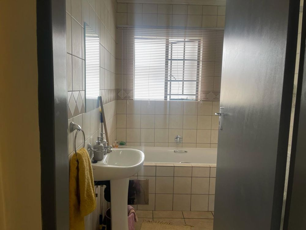 The 2 spacious bedrooms are complete with carpeted flooring and built-in cupboards as well as aluminium window frames. The well-sized bathroom offers a shower, bathtub, basin, and toilet.