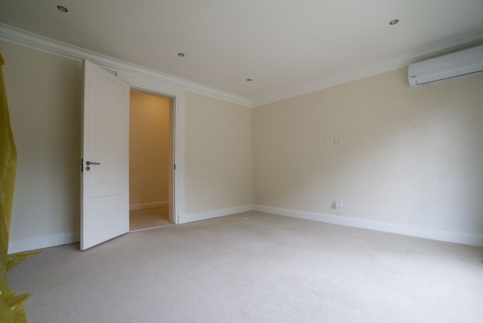 The upper level is designed for ultimate comfort, featuring two large en-suite bedrooms in the left wing, each with its own balcony and a linen room. The right wing offers the master bedroom, which has a private balcony and an en-suite bathroom, along with a fourth bedroom that can serve as a study and a full en-suite bathroom. All bedrooms are equipped with air conditioning for added comfort.